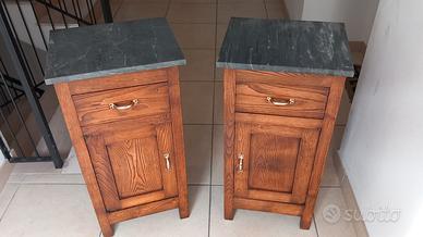 coppia di comodini vecchi in castagno massello , già restaurati , piano 40x33 alti 80