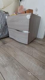 Coppia di comodini e cassettiera coordinati, in ottimo stato. Cassetti con chiusura sistema soft-close. Particolare design a onda. Vendo per cambio arredamento.