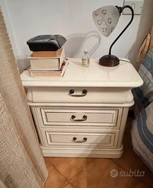 Vendo solo a persone che possono ritirare in zona due comodini e una cassettiera mi ile legno massello verniciato Bianco