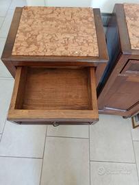 Comodini antichi con piano di marmo rosato, un cassetto e uno sportello con ripiano interno. Si vendono anche separatamente a € 50. Entrambi a € 80.