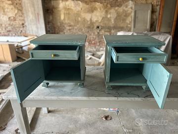 Coppia di comodini in legno verniciati con cassetto e sportello. Misure L 50 x P40 x H 51