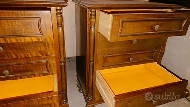 Comodini in noce con 5 cassetti. In vero legno (no truciolato).