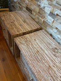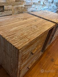 Vendo coppia di comodini artigianali in legno massello con finitura decapata (effetto bianco spazzolato). Robusti e ben curati, perfetti come proposta coordinata per camera in stile naturale o etnico. 57x50x45cm ciascuno.