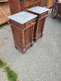 Coppia di comodini luigi xvl antichi in noce con ripiano in marmo