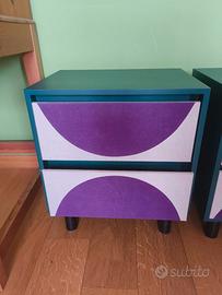 2 comodini maison du monde verde scuro con piedini neri 2 cassetti con tessuto viola e bianco. H 46 cm Prof 30 Largo 40 Vendo 25 euro la coppia
