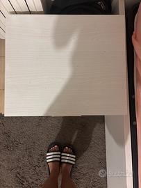 Vendo coppia di comodini in ottime condizioni, perfetti per camere moderne o minimal. Realizzati in legno bianco effetto venato, con due ampi cassetti scorrevoli ideali per riporre oggetti, libri, caricabatterie e molto altro. Le maniglie larghe garantiscono una presa comoda e solida.