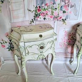 Coppia di comodini , molto particolari dipinti a mano con tecnica decoupage e stencil , curati nei minimi particolari , visibili a Carpi