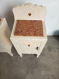 Vendo coppia di comodini shabby chic in legno massello e con pezzi e marmo originali. Ritiro a mano nella zona di Piacenza. Prezzo trattabile