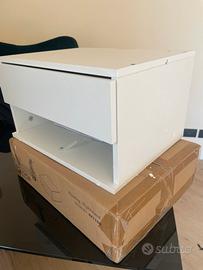 Comodini sospesi con cassetto, colore bianco, dimensioni 39x30x22. Uno ancora nella confezione originale, l’altro solo montato ma mai usato. Nuovissimo.