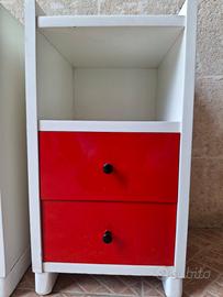 coppia comodini laccati bianchi con cassetti rossi. altezza cm 57 larghezza cm 30 ritiro Sava provincia di Taranto prezzo €25 cadauno