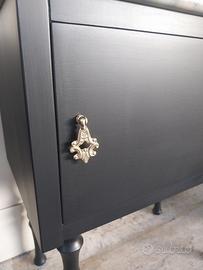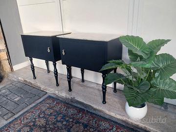 💫Pezzi unici 📍 Monterotondo (Roma nord) 🚚 Ritiro a carico dell’acquirente 🏷Elegante coppia di comodini vintage restaurati in nero profondo opaco con top in vero marmo bianco venato. 💫Pomelli originali in ottone lucidati Il contrasto tra il marmo e il colore nero crea un effetto raffinato e contemporaneo, perfetti sia in ambienti moderni che classici. 🔎 Piccolo segno su uno dei top (visibile in ultima foto)