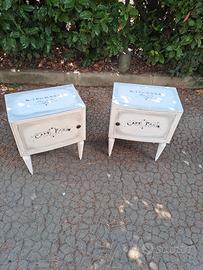 Comodini shabby appena stilizzati, con scritta di tendenza e sfumatura a cera d'api scura... misure 50x32 alti 62