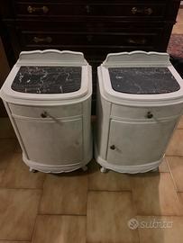 Comodino in radica di fine 800 riverniciati in stile shabby con ripiano in marmo