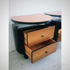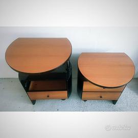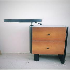 Comodini di alto design rarissimi,hanno in dotazione un tavolino girevole e regolabile in altezza, che li rende particolarissimi e con doppia utilità,ad uno manca un cassetto.