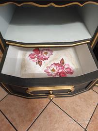 Non è un semplice mobile riverniciato, ma un pezzo vintage reinterpretato con un restyling artigianale completo: