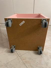In ottime condizioni, comodino a cubo Ikea colore rosa con ruote per cameretta bambini o altro. Provvisto di numero quattro paracolpi per angolo.