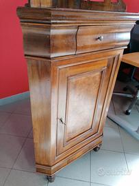 Comodino angolare in legno, misure: Larghezza cm. 67 Profondità cm. 39 Altezza completa cm. 185 Altezza parziale cm. 108 Ritiro a Ferrara