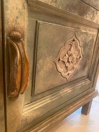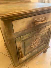 Comodino anni 40’ rivisitato con tecnica delabré e anticatura. Ritiro a carico dell’acquirente.