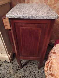 Comodino originale anni "50 in buone condizioni. Tutto in legno con intarsi di listelli in legno più chiaro.