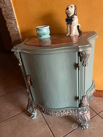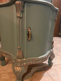 Comodino antico con fregi in legno massello