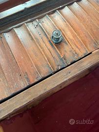 Vendo comodino / tavolino da notte antico risalente a fine Ottocento – inizi Novecento, in legno massello con cassetto superiore e vano interno foderato in tessuto rosso originale.