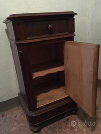 Comodino antico in legno da restaurare. Misure ca.: 45x37, altezza 80 cm. Disponibile a fornire ulteriori foto e dettagli