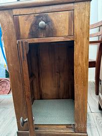 Vendo comodino antico in legno di noce, stile Arte Povera, risalente alla fine dell’800. Mobile originale d’epoca, dalle linee semplici ed eleganti, tipiche dell’arredo tradizionale italiano