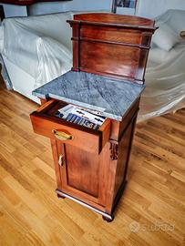 Comodino in noce, bellissimo, con marmo grigio originale, primi anni del 900 origine Italia/Puglia.