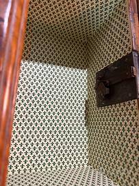 • Interni: Cassetti foderati con carta decorata a gigli (fleur-de-lis) in ottime condizioni.