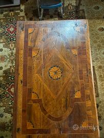 • Decorazione: Intarsi magistrali con motivi a "ventaglio" agli angoli, medaglione centrale a rosone e bordure a contrasto (greche geometriche).