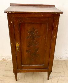 Comodino in legno come da foto adatto per essere rivisitato in stile Chabby o da utilizzare come pezzo originale in contrasto con arredamento moderno. Da utilizzare come comodino o mobiletto porta lampada, per la macchinetta del caffè, con un vaso porta fiori ecc.