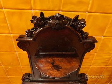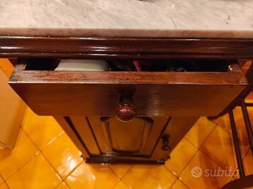 Vendo comodino antico in legno con piano in marmo e parte superiore finemente lavorata a mano con decorazioni floreali (rose scolpite). Ottime condizioni, generalmente ideali per arredamento vintage e da, collezione. Ritiro a carico acquirente in Orbassano Torino