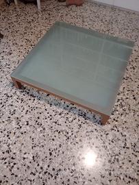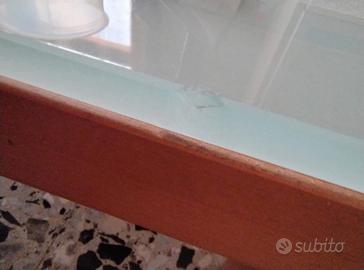 Comodino legno e ripiano in vetro Misure 90x90 e 19cm di altezza. Il piano in vetro ha spessore di 1cm ed è appoggiato sulla struttura in legno. Come da foto il vetro presenta una scheggiatura in un pu to, ma non tagliente