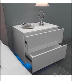 Comodino Bianco Lucido con led (55x37x50 cm) / 2 Frontale Cassettiera in