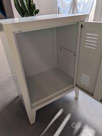 Vendo per inutilizzo un comodino bianco in metallo altezza 57cm, larghezza 41 cm e profondità 30 cm. all'interno è presente un ripiano che si può estrarre. Spedisco o accetto ritiro a mano zona Cantù (Como).