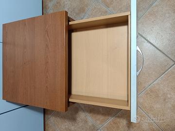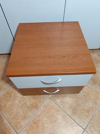 Vendo comodino a due cassetti in ottime condizioni, molto pratico grazie alle ruote che permettono di spostarlo facilmente. Il mobile è in ottime condizioni: il cassetto superiore è azzurro chiaro, quello inferiore è color legno (come il resto della struttura). Le maniglie sono color argento satinato. Dimensioni: Altezza: 41 cm Larghezza: 45 cm Profondità: 45 cm Condizioni: Il mobile è a posto e i cassetti scorrono perfettamente. Segnalo solo un piccolo graffio quasi invisibile sulla parte bassa a sinistra, ma per il resto è perfetto. Per ulteriori foto e informazioni non esitate a contattarmi