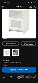 Vendo comodino modello Brimnes IKEA colore bianco, leggermente rovinato sul fianco sinistro come da foto, ad ogni modo molto poco visibile, ritiro a cura dell’acquirente. NON SPEDISCO