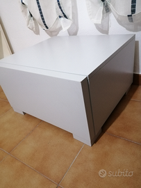 Vendo comodino per cameretta moderna. Laccato opaco grigio perla, piccola imperfezione spigolo destro come da foto. Le misure sono cm 60x60 h cm 40.