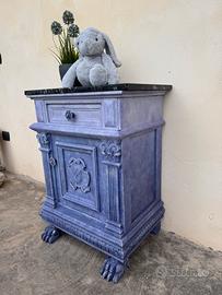 Comodino singolo restaurato, adatto come svuotatasche o comodino per camera da letto Bambina. Nuance del lilla che gradualmente degradano al panna. Effetto materico.