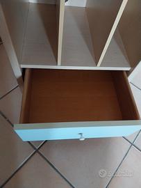 vendo comodino per cameretta color legno chiaro e azzurro chiaro. uguale alla libreria sempre pubblicata da me. molto capiente con ruote girevoli H. cm 64 L cm 50 P cm 47 prezzo trattabile