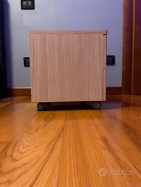 Vendo comodino per cameretta. Misure lunghezza 45cm - profondità 35cm altezza 36cm - altezza cassetto 14,7cm. Dotato di ruote.