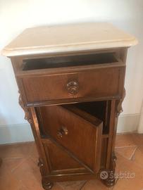 Comodino classico in legno con piano sagomato in marmo. Dimensioni cm. 47x40x90 h.