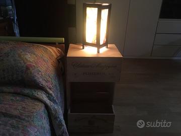 Vendesi comodini realizzati con casse di vino in legno... ecco le misure : Larghezza 33cm, Altezza 61cm, Profondità 27 100? la coppia , 55? il singolo come nella foto