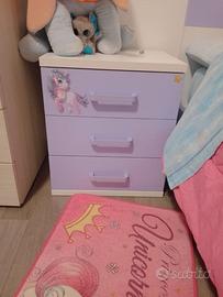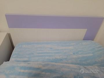 Si vende comodino e testata letto coordinati. Ottimo legno e nessun segno di usura. La testata del letto va direttamente fissata sulla rete e viene fornita completa di piedi per la rete e viti di fissaggio. Attenzione la rete ed il materasso non sono in dotazione!!