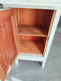 Vendo comodino della nonna shabby, con piano in marmo, cassettino ed un'anta con ripiano interno. È stato fatto trattamento antitarlo e poi shabbato con vernici Rio verde colore cocco.