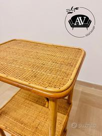 Comodino/étagère vintage anni ’70/’80 in bambù e rattan intrecciato.
