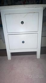 comodino con 2 cassetti e piccolo scompartimento dentro misure: altezza 65 cm, 54 larghezza ,35 profondità.