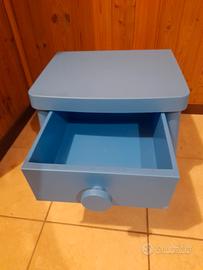 Comodino azzurro della linea Mammut di Ikea, usato ma tenuto molto bene. Ha solo una piccola imperfezione in basso nel cassetto. Ritiro a mano a Paderno Dugnano.
