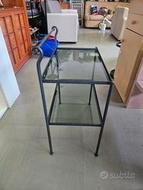 comodino in ferro battuto con 2 ripiani in vetro Larghezza 53 altezza tot. 67 profondità 31