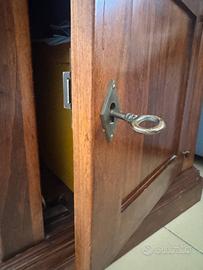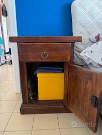 Comodino in legno massello dal carattere autentico, con dettagli in ferro brunito e finitura calda. Un pezzo essenziale ma curato, pregiato, con chiusura a chiave e presenza solida. Dotato di: – cassetto superiore – vano con anta e chiusura a chiave – buona capienza Perfetto come comodino, ma anche come mobile d’accento in ingresso o living. Pezzo unico 💫 Misure: Altezza: 65 cm Profondità: 35 cm Larghezza: 44 cm
